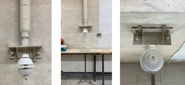 The exhibition also includes four sculptures: Ílát í Sundur / Vessels Disassembled 2025, a free-standing sculpture made of plaster, wood, mirror, and string, measuring 80 x 80 x 160 cm. Einnota Ílát /Disposable Vessels 2025, two wall bas relief made of plaster, each measuring 5 x 14 x 22 cm. Botnar /Bottoms, 2025 – a wall-mounted hanging piece made of plaster, wooden beads, iron hook, and string, measuring 15 x 80 cm.